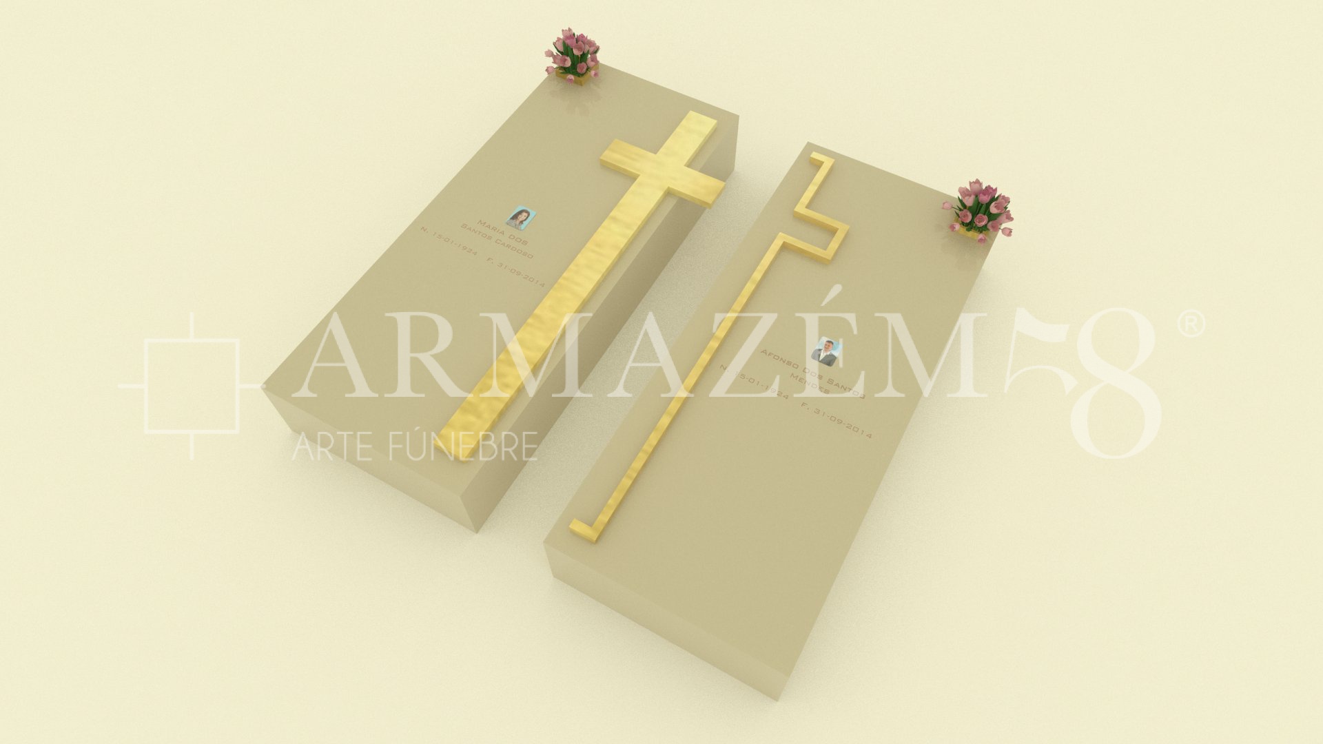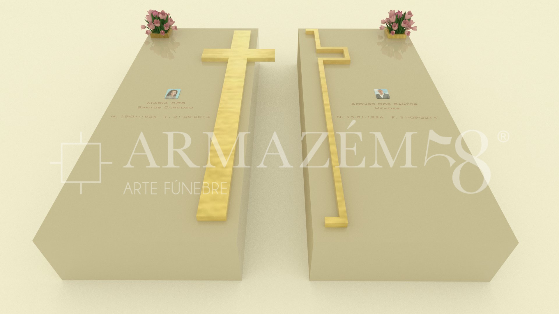 #2CCR0016* CAMPA DUPLA Especificações:Acessórios em latão, Floreiras semi-embutidas, Personalização com mensagem gravada, Facilmente lavável Disponível em diversas cores e materiais+ informações: 244 028 029 / 919 022 583 / 919 022 830