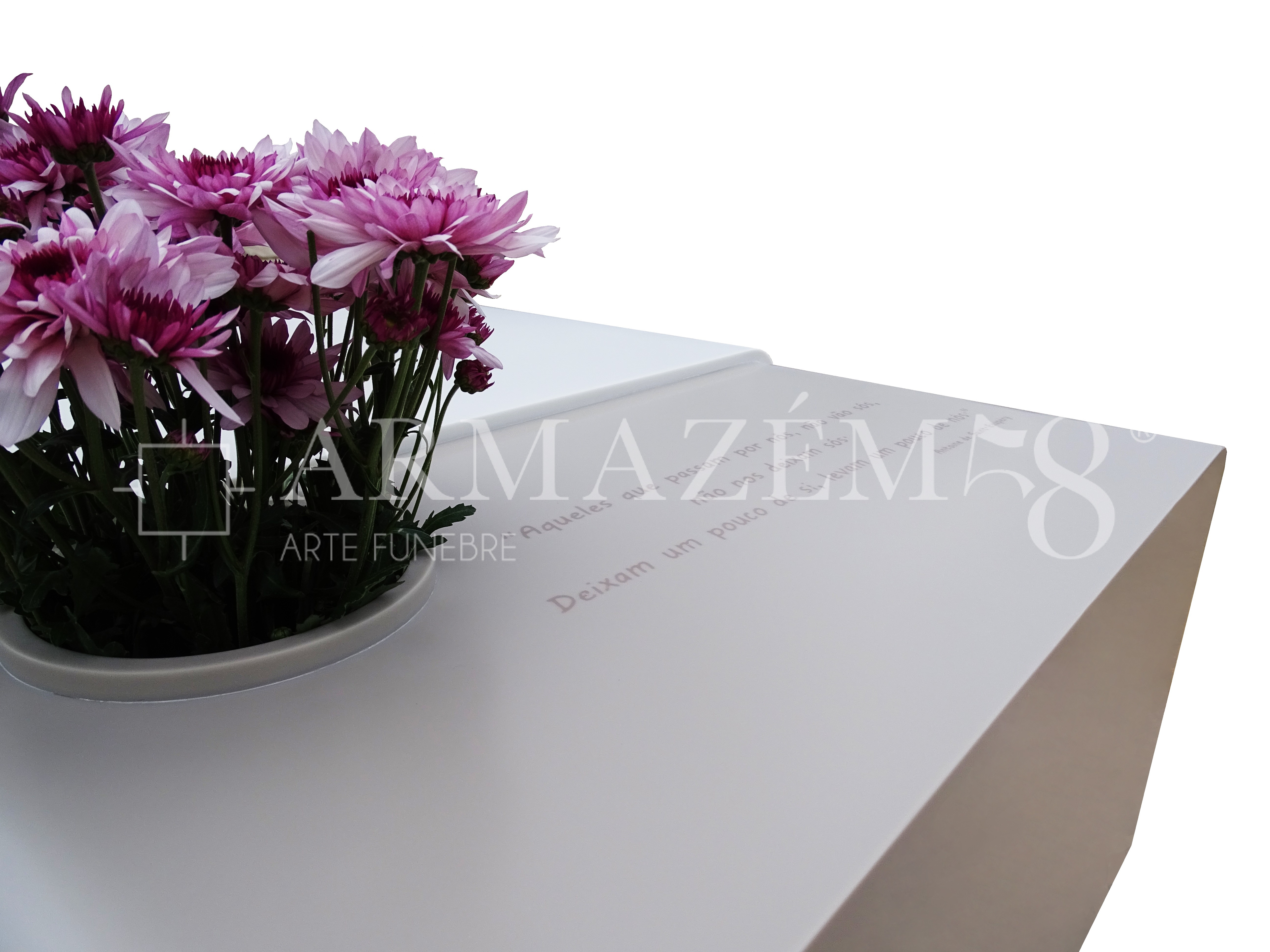 #CCC0002* CAMPA INDIVIDUAL Especificações:Cantos redondos, Floreira embutida, Personalização com mensagem gravada, Facilmente lavável Disponível em diversas cores e materiais+ informações: 244 028 029 / 919 022 583 / 919 022 830