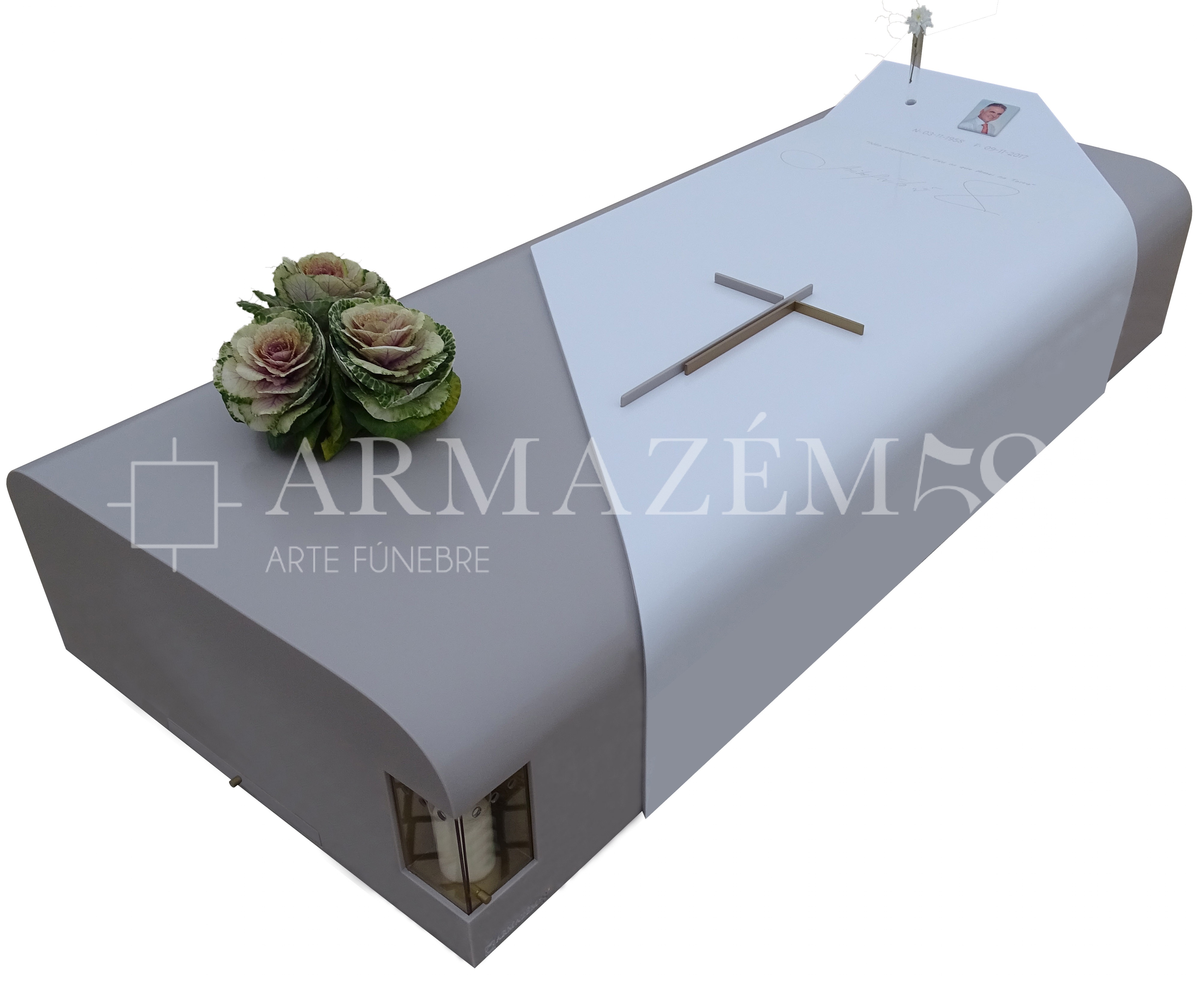 Lanterna, gaveta para pousar velas e floreira embutidas;