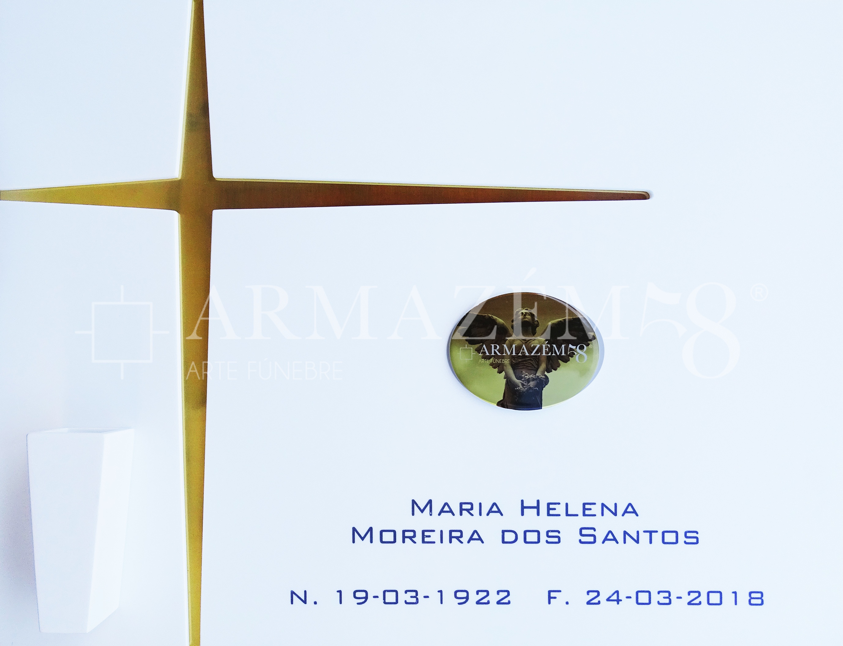 #FG002* Frente para ossário ou gavetão Especificações: Cruz rasgada, com fundo em latão envernizado;Vaso amovível;Gravação Personalizada. Disponível em diversas cores e materiais+ informações: 244 028 029 / 919 022 583 / 919 022 830