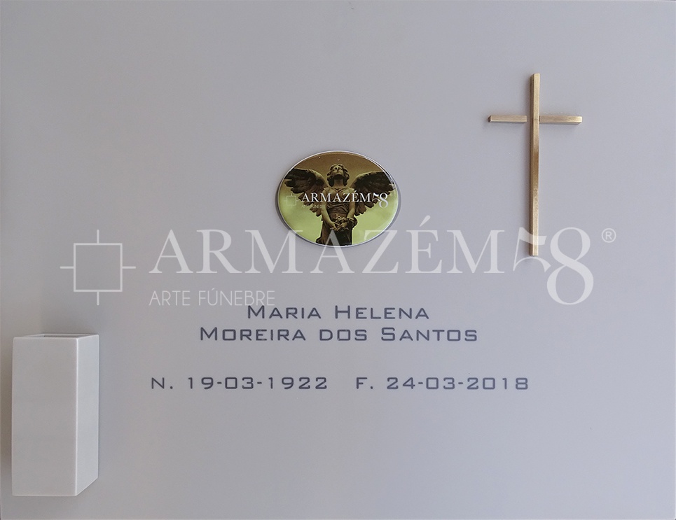 #FG004* Frente para ossário ou gavetão Especificações: Cruz em latão envernizado;Vaso amovível;Gravação Personalizada. Disponível em diversas cores e materiais+ informações: 244 028 029 / 919 022 583 / 919 022 830